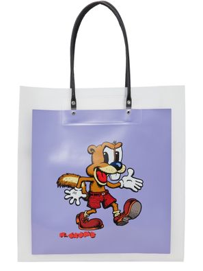 This tote bag is proof of the American designer Marc Jacobs's grunge influences. The quirky comic book designs are the work of Robert Crumb, a comic book author who is recognized as one of the leading figures in underground comics. The inscriptions on the back are a tribute to the collection that launched Marc Jacobs's career. This sleek accessory highlights different patterns.
