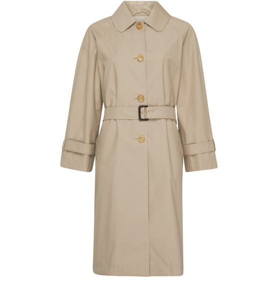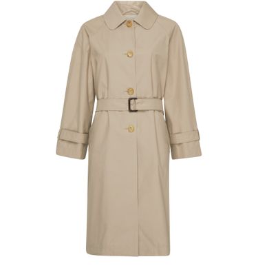 Max Mara's Trench coat - THE CUBE is a sophisticated and timeless piece featuring a logo at the back label. With button fastening and front buttoned closure, this knee-length coat is both stylish and practical. It has side pockets, long sleeves, and a luxurious gold finish, making it a versatile addition to any wardrobe.