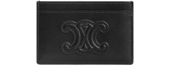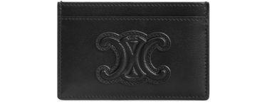 Celine's Triomphe card holder in shiny calfskin is a luxurious accessory that embodies elegance. Adorned with exquisite gold finishing, it features two credit card slots and one flat pocket, providing both style and functionality. This chic piece effortlessly elevates your everyday essentials, making it a must-have for the discerning individual.