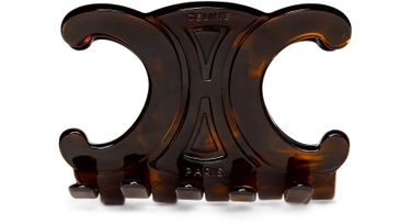Celine's Triomphe large hair claw in acetate is a statement piece that effortlessly elevates any hairstyle. With its sleek design and signature Celine Paris emblem, it combines elegance and functionality. This exquisite accessory is perfect for securing your hair while showcasing a refined sense of style that captures the essence of luxury.