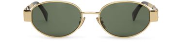 Celine Triomphe metal 01 sunglasses embody elegance with their refined oval frame and striking green lenses. Designed to protect from UVA and UVB rays, they seamlessly blend style and functionality. The Triomphe signature graces the temples, adding a touch of luxury, making these sunglasses a must-have accessory for any fashion enthusiast.