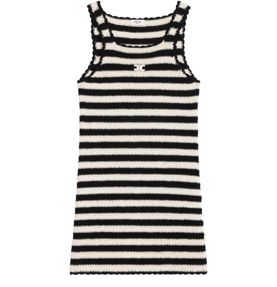 Celine's Triomphe striped crocheted cotton mini dress embodies effortless elegance. With its Crochet Triomphe embroidery and classic fit, this Italian-made piece offers a playful yet sophisticated silhouette. Perfect for sunlit outings or evening soirées, it captures the essence of modern femininity, making it an essential addition to any wardrobe.