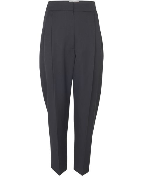 • Description : High-waisted pants, pleats at the front, concealed zip fastening, loose, flowing cut.