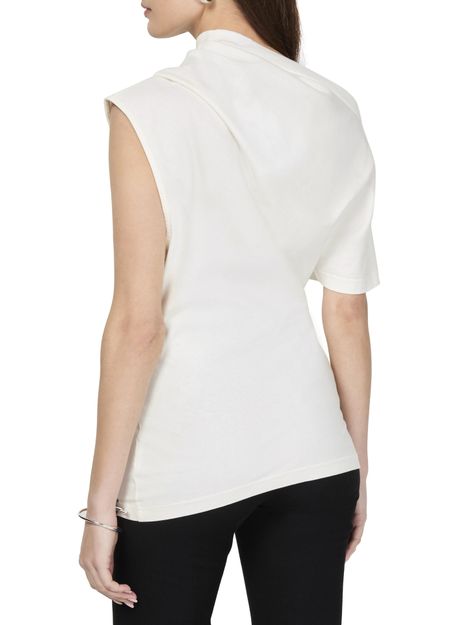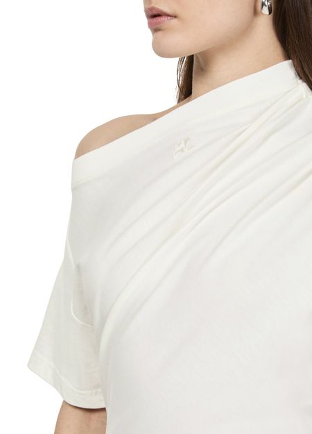 Courrèges's Twits asymmetrical t-shirt showcases a sleeveless design that blends modern style with comfort. Its unique asymmetric neckline draws attention, while the embroidered logo adds a touch of sophistication. Visible stitching highlights the craftsmanship, and the regular length makes it a versatile addition to any wardrobe, perfect for effortless layering.