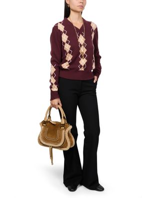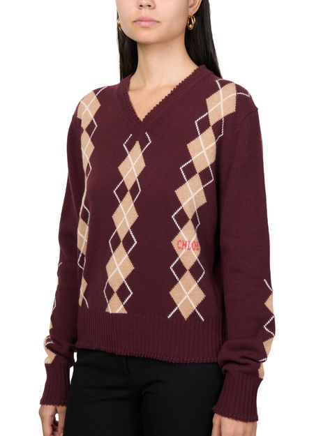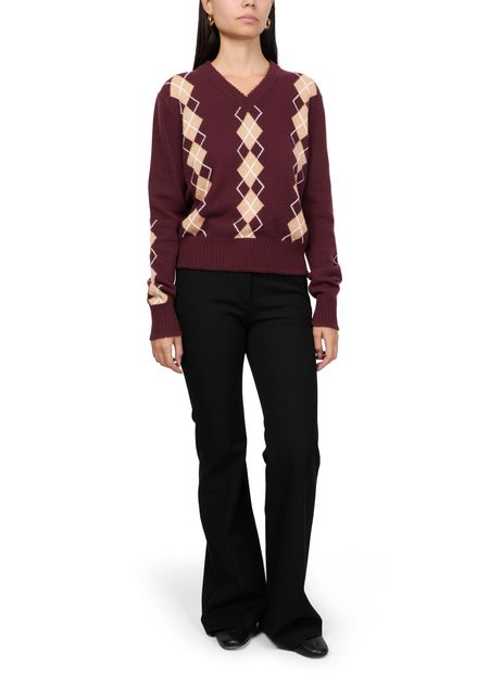 Reveal Chloe's V neck sweater, a masterpiece in knitwear. This crop-length piece features a ribbed texture and a striking diamond pattern, offering a modern twist on classic style. The long, cuffed sleeves add a touch of elegance, making it perfect for both casual and sophisticated ensembles.