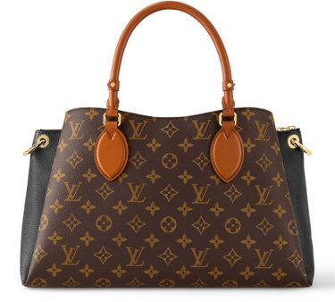 Evocative of the Louis Vuitton Pallas bag from 2012, with its combination of textures and colors, the Vendôme MM tote is fashioned from Monogram canvas with grained leather on the sides and smooth leather on the handles and handle mounts. Inside there are two compartments, room for a laptop, and numerous pockets.