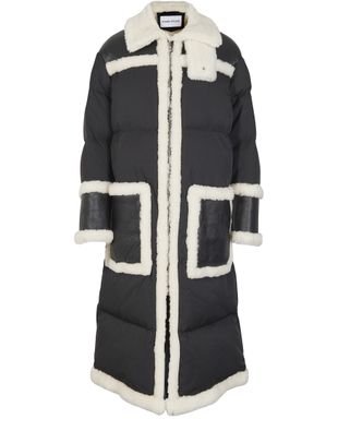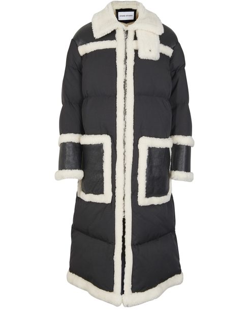Try on the long Vicky coat's geometric style by Stand, where every detail is highlighted by a wide contrasting edge.