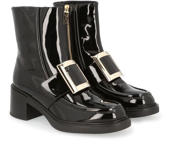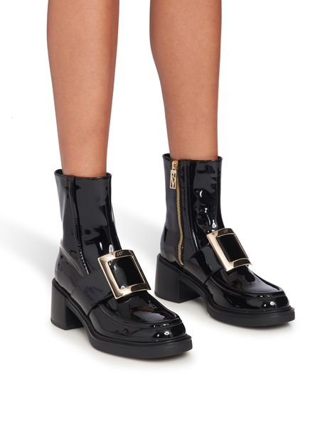 With these VIV X Bottes A Boucle biker boots, Roger Vivier reworks a military classic, feminizing it with a signature rectangular buckle. Wear with an airy skirt for a striking contrast look.