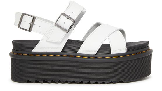 • Description : Open round toe, notched sole, buckled ankle strap, back strap with buckle, contrast stitching.
