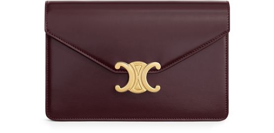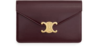 Celine's Wallet on chain Triomphe in shiny calfskin is a stunning blend of elegance and practicality. With its sleek design and versatile carrying options, it effortlessly transitions from hand carry to shoulder and cross-body styles. The Triomphe metallic snap button closure reveals a spacious compartment, six credit card slots, and a flat pocket, making it a perfect companion for any occasion.