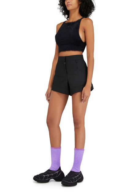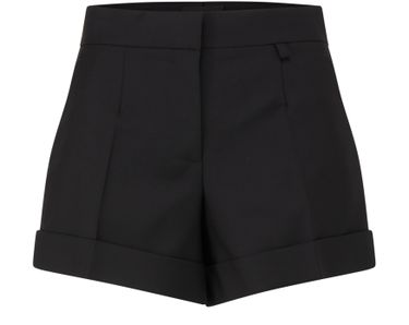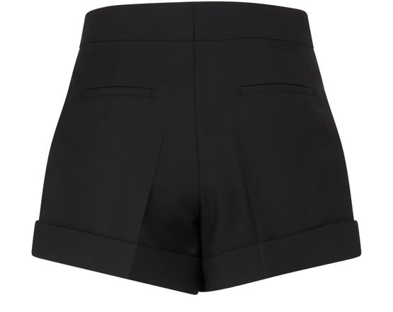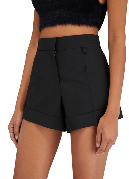 Givenchy's Wide shorts are a stylish choice for any casual outfit. These cropped shorts feature a concealed zipper closure for a sleek look. They also have side pockets for added convenience. The visible lapel detail adds a touch of sophistication, reminiscent of a jacket. Perfect for a modern and trendy wardrobe.