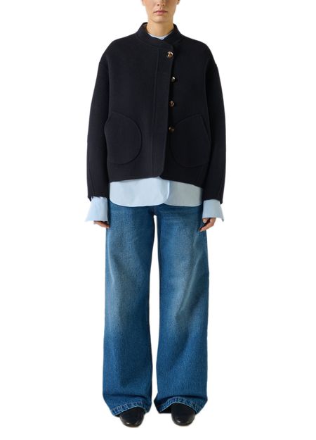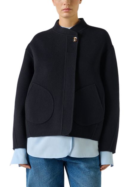 • Description : short, bombers, long-sleeved, side pockets, concealed closure, high neck.