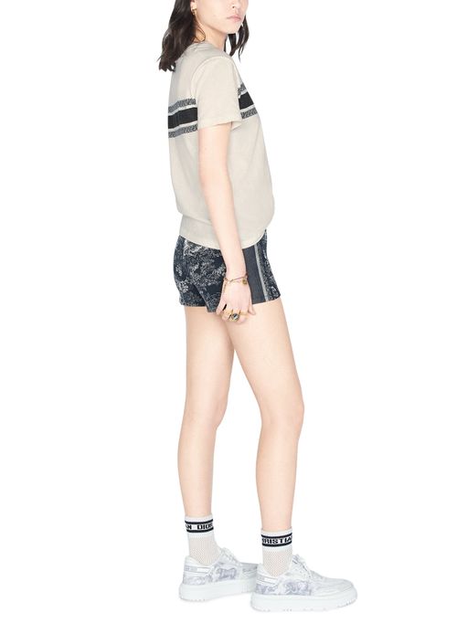 The Dior wardrobe styles women in every season and for every occasion, whether it's with a marinière, bikini bottoms, a Brandenburg jacket or a coat. It is for the detail of a pleat, a series of geometric ruching or delicate godets that we will embrace a garment from the House. Each piece plunges us into an ever-changing world of magic. The ready-to-wear wardrobe enhances the figure, whether in a slim-fit, fitted, straight or flared cut. The textures in silk, denim, cashmere or wool knitwear are a delight. Dior Oblique patterns are matched by arabesque checks or floral prints.