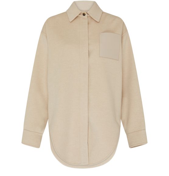 Loewe's wool and cashmere overshirt showcases a long, buttoned closure that effortlessly blends style and comfort. With cuffed sleeves and a classic shirt collar, it features patch pockets and a breast pocket for practicality. Visible stitching adds a unique touch, while side slits enhance movement, making it a versatile wardrobe staple.