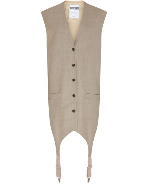 Description : front buttoned closure, appliquéd logo, logo at the back label, visible stitching, mini dress, two front pockets, welt pockets, sleeveless, v-neck.