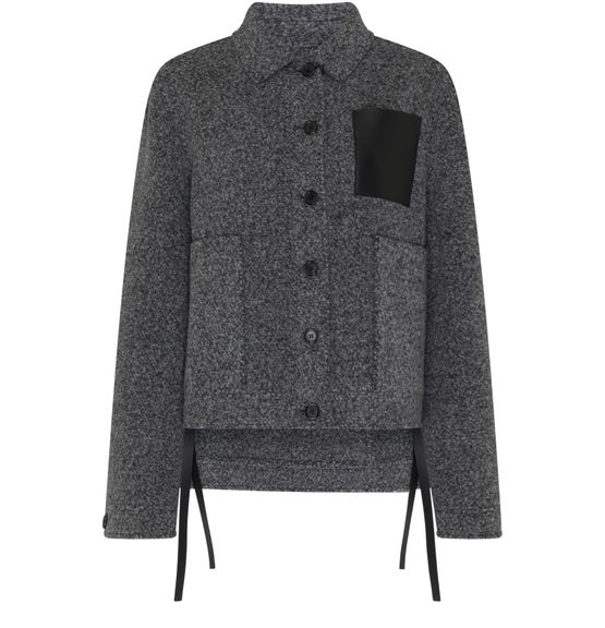 Loewe's Workwear-style wool jacket boasts a shorter front design with a front buttoned closure for effortless style. Its long-sleeved silhouette is perfect for layering, while the appliquéd logo adds a touch of sophistication. With two front patch pockets, this casual jacket combines functionality and fashion seamlessly.