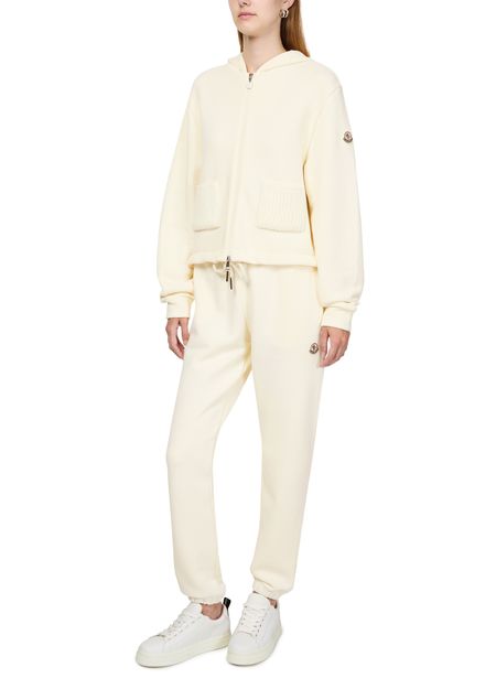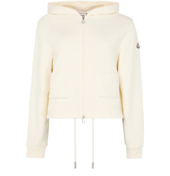 Moncler's zip-up bi-material jacket seamlessly blends style and function. Elevate your look with its hooded neckline and cuffed long sleeves. Designed with a regular fit, the cropped length adds a modern touch, while the side logo detail enhances its chic appeal. Perfect for versatile styling.