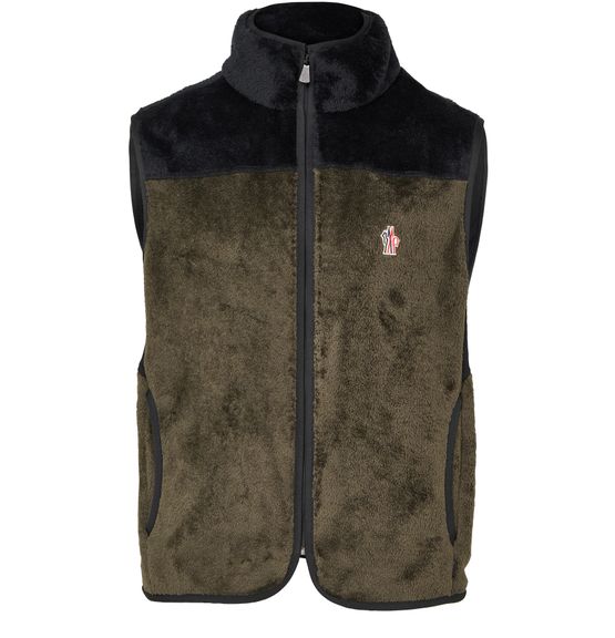 Reveal Moncler Grenoble's zipped-up sleeveless jacket, crafted from warm fabric with a sleek, sleeveless silhouette and high neck. The zipper closure and side pockets add practicality, while the embroidered chest logo and refined details elevate its modern appeal. Perfect for versatile styling, this short jacket redefines casual sophistication.