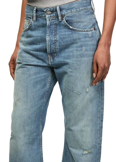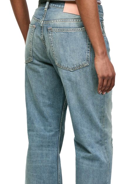 Reveal Acne Studios's 2021F Daybreak straight jeans, crafted with ankle-length precision and a sleek button fastening. Visible and contrast stitching add a modern edge, while belt loops and two front pockets ensure both style and practicality for versatile, everyday wear.