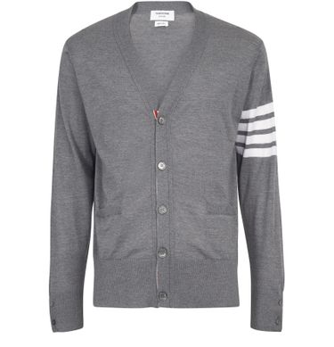 This cardigan in fine merino wool brings extra warmth to your shoulders, and can perfectly finish off a vintage and sophisticated look. This creation for men adds recognisable features like the signature of the Thom Browne fashion house. A fine tricoloured strip decorates the buttonhole of this gilet cardigan, while a discreetly placed badge blends into the classic look.