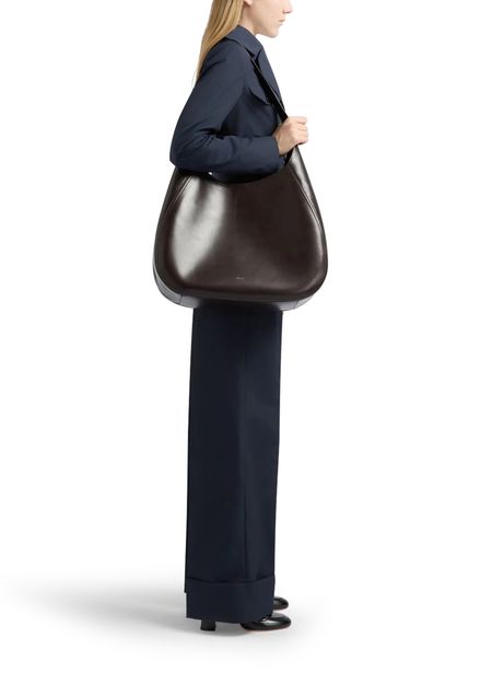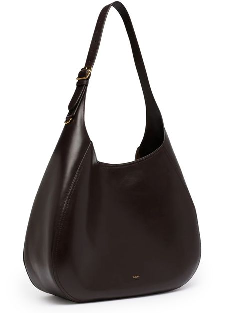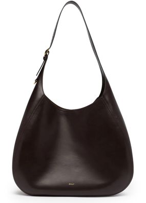 Reveal Bally's Althea hobo bag, crafted from smooth leather. The double handles and thin, adjustable strap offer versatile carrying options, while visible stitching and a front logo in gold letters add a refined touch. A modern essential for any wardrobe.