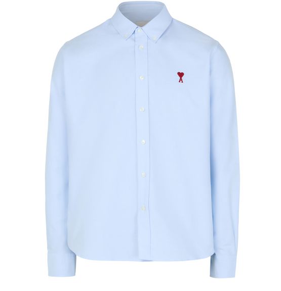 Ami's Ami's de Cœur shirt showcases a classic long-sleeved design with a front buttoned closure. Its shirt collar and buttoned cuffs add refined touches, while visible stitching and an appliquéd logo enhance its casual appeal. An embroidered chest logo and a logo at the back label complete this stylish staple.