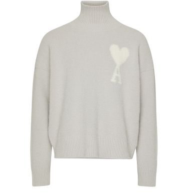 Ami de Cœur turtleneck sweater is a stylish knit sweater with a straight cut design. It features ribbed detailing for added texture and a rollneck/turtleneck collar for a touch of sophistication. With long sleeves and a chest logo, this sweater is a versatile piece for any wardrobe.