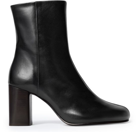 Reveal Lemaire's smooth leather boots, crafted with a high block heel and a refined round closed toe. These boots offer a modern silhouette, blending comfort and sophistication for a statement look. The premium finish and subtle details make them a standout addition to any contemporary wardrobe.