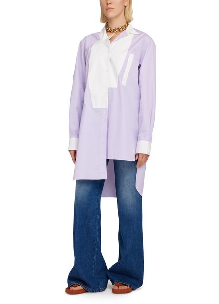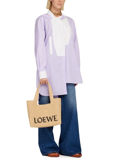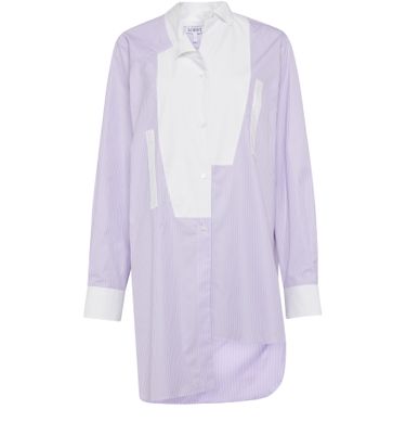 The Loewe Asymmetric Striped Shirt is a stylish long-sleeved shirt with a buttoned fastening. It features a unique two-tone print and an asymmetric cut, adding a modern touch to the classic design. With its loose fit, this shirt offers both comfort and a fashionable look.
