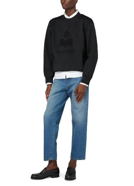 Marant's Ayler crew neck sweater is a long-sleeved, straight cut essential for the modern wardrobe. Crafted from ribbed fabric, it features a classic round neck and subtle front logo detail for a touch of understated elegance. This versatile piece can be dressed up or down for a timeless and effortless look.