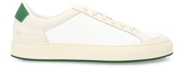 Common Projects re-works the masculine streetwear look with their Retro Low 70S sneakers. Their architecture using inserts in different materials is complemented by their slender line.