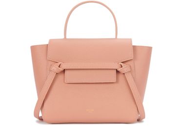 Celine's Nano belt bag in grained calfskin is a versatile companion, effortlessly transitioning from hand carry to shoulder or cross-body styles. With its elegant flap closure featuring a hidden metallic piece and zipped pocket beneath, this bag combines functionality with luxury. The removable leather strap and chic handle add to its allure.