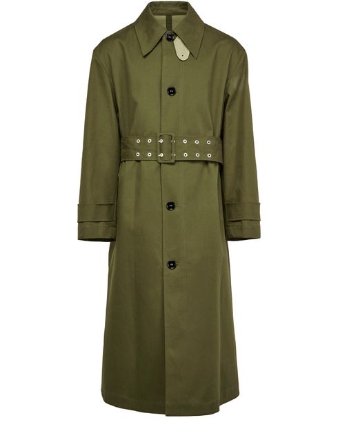 Ami's Belted trench coat mac showcases a long, tailored silhouette with a sophisticated front buttoned closure. Its classic design includes a stylish tailored collar, long-sleeved fit, and functional side welt pockets. This belted coat is perfect for elevating any outfit while providing both elegance and practicality for any occasion.