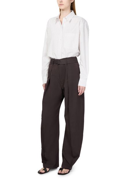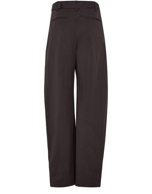 Description : back pocket, welt pockets, concealed zipper closure, visible stitching, high-waisted fit, belt loops, back darts, ankle length, front pleating, formal pants.