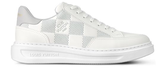 This bicolor edition of the Beverly Hills sneaker comes in soft calf leather partially printed with an oversized version of the Damier pattern. This model pairs an elegant upper with a chunky, yet ultra-lightweight, rubber outsole, which is debossed with the Louis Vuitton signature. A padded insole and technical lining provide enhanced comfort and suppleness.