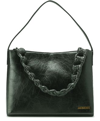 Designed by Jacquemus, the large Noeud bag owes its name to its braided leather strap. It features the French designer's name in gold letters in the corner.