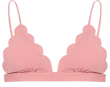 This Bikini top from Marysia embodies the fashion house's taste for retro lines. Its polka dotted material and scalloped edge lend elegance to the chest area. We pair it with the high waisted Santa Monica bikini bottom, for example, and finish off the beach outfit with a dark-colored beach kimono.