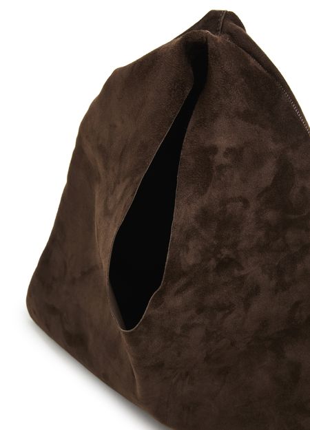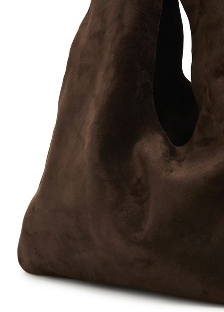 The Row's Bindle small shoulder bag offers a sleek design with a single compartment for essentials. Its single handle and wide strap allow for versatile carrying, whether hand carried or worn on the shoulder. Visible topstitching adds a refined touch, making it the perfect shopper or tote bag for any occasion.