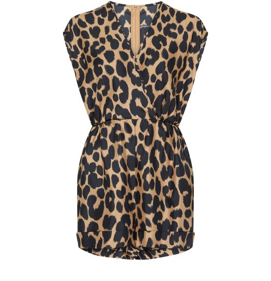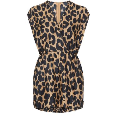 Max Mara's Bingo printed jumpsuit combines elegance and playfulness with its short-sleeved design and flattering v-neck. Featuring an all-over leopard print, this mini dress is perfect for any occasion. The concealed back zipper closure ensures a seamless look, while the logo at the back label adds a touch of sophistication.