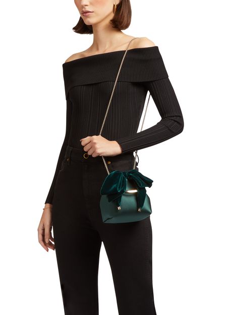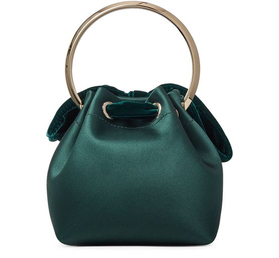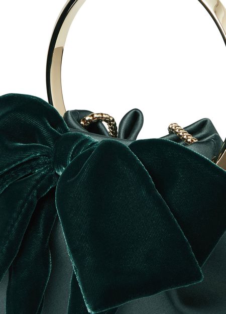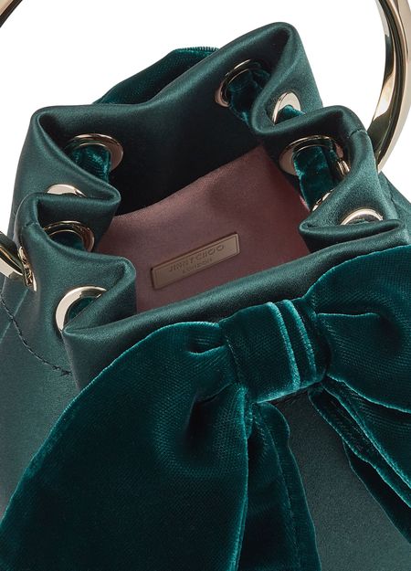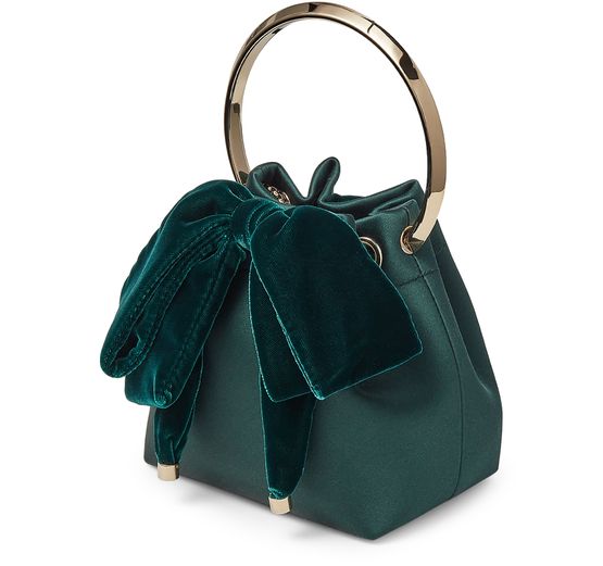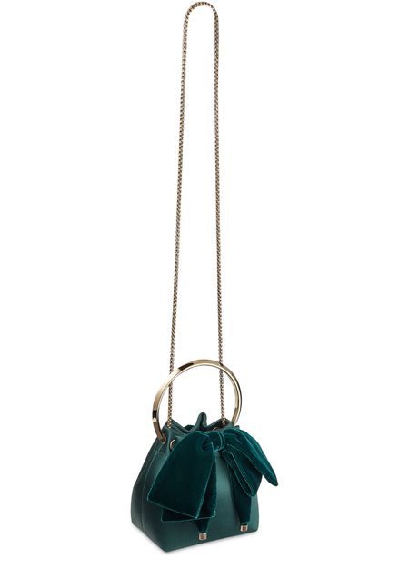 Jimmy Choo's Bon Bon bucket bag is a versatile accessory that can be hand-carried, worn on the shoulder, or across the body thanks to its thin strap. The silver finish and appliquéd logo add a touch of sophistication to the design. With a single compartment, it is both stylish and functional.