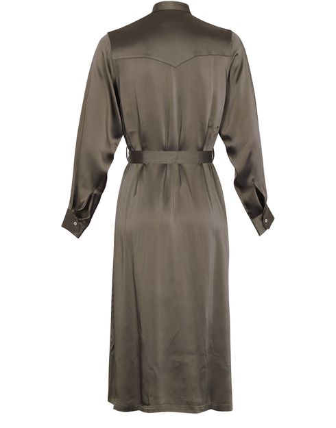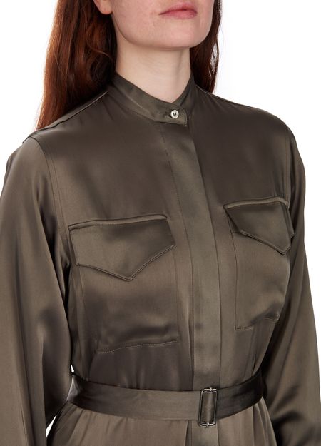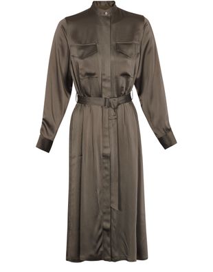 The Ronnie dress and its freely inspired trench coat shape underline a feminine look. This shirt dress with a belt has two faux pockets and carries the signature of Officine Générale.