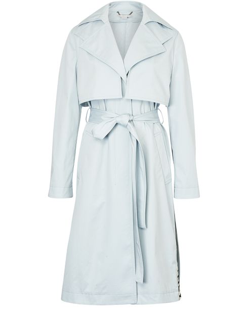 This trench coat has a very well-worked structure. This originally-structured piece with large inserts features a modern look from Stella McCartney.
