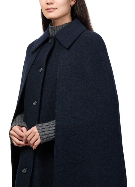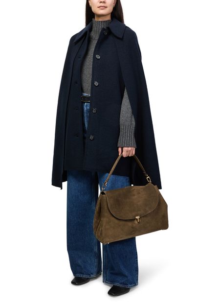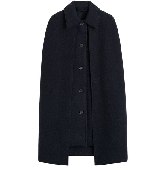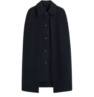 Reveal Toteme's cape coat, a refined statement piece with long sleeves and a sleek button fastening. Crafted for versatility, its elegant silhouette transitions seamlessly from day to evening. Subtle details and a polished finish make this essential outerwear a modern wardrobe staple.