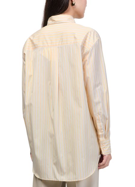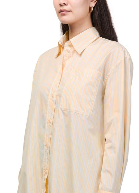 Reveal Soeur's Carlotta shirt, a refined top featuring long, cuffed sleeves and a crisp striped print. The front buttoned closure and subtle breast pocket add a tailored touch, making this shirt a versatile choice for both professional and casual ensembles.