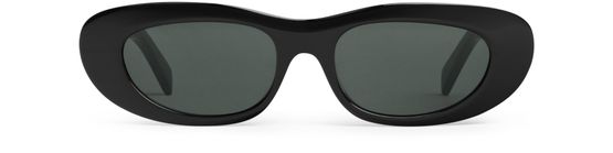 Reimagine Celine's Cat Eye sunglasses with smoke lenses and iconic temple signatures, offering stylish protection against UVA and UVB rays.