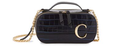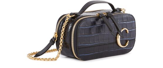 Adorned with Chloé's signature gold tone "C" the Chloé C Vanity mini bag is feminine and sophisticated. In dark green crocodile effect calfskin it has an elegant gold chain so it can be worn on the shoulder or cross body. The mini size makes it almost jewel like, ideal for evening wear.