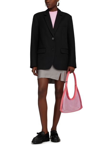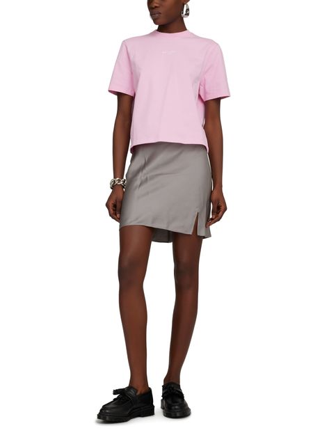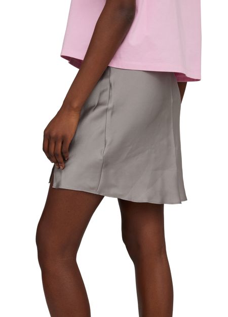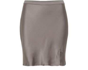 Chrisly skirt is a chic mini skirt with an elasticated waist for a comfortable fit. It features a front slit and side slit for added movement. The back label has a discreet logo for a touch of branding. This versatile skirt is perfect for both casual and dressed-up looks.