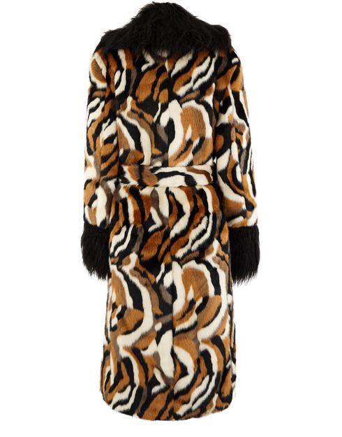 The Coraline faux fur coat is designed by Staud. It combines vintage inspiration and tawny colours. This piece reflects the American brand's sophisticated spirit.