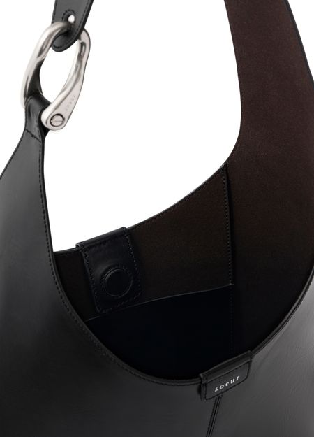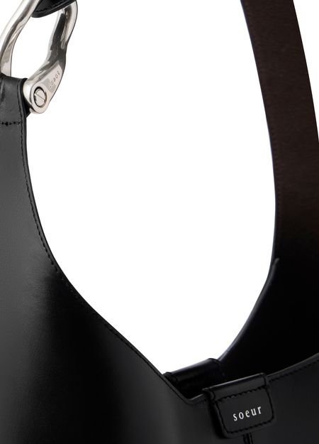 Reveal Soeur's mini hobo shoulder bag, crafted from smooth leather with a single handle and thin strap for versatile styling. Visible topstitching and a front logo add refined detail, while the silver metal finish elevates its modern appeal. A sleek choice for contemporary wardrobes.