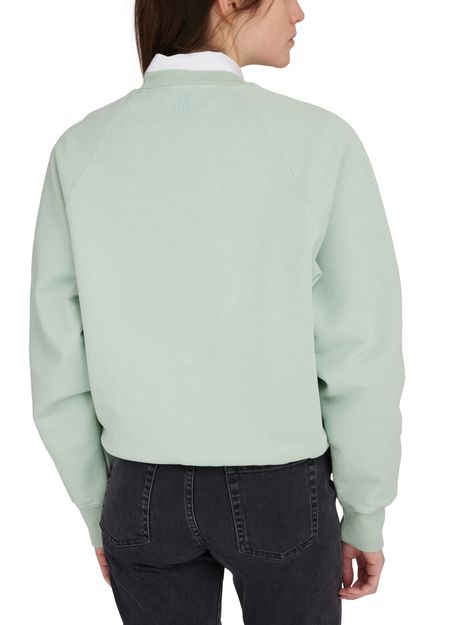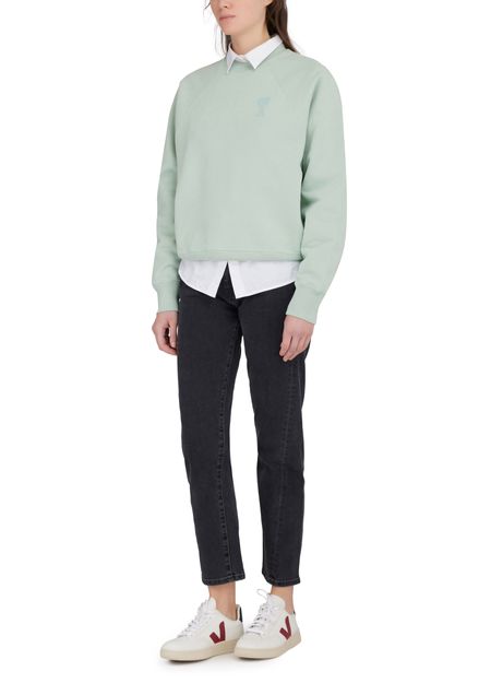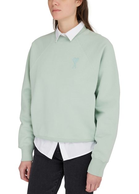 Crew neck sweatshirt Ami De Cœur is a long-sleeved sweatshirt with a loose fit, featuring a round neck and raglan sleeves. It is adorned with a chest logo and a logo at the back, adding a touch of style to your casual outfit.